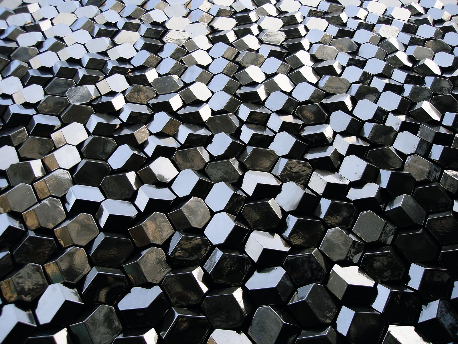 Originally developed by geometer and mathematician Einar Thorsteinn, the quasi brick is a twelve-sided polyhedron consisting of rhomboidal and hexagonal faces. Through their collaboration, Eliasson and Thorsteinn began investigating the potential for using the quasi brick in architecture. When the space-filling modules are stacked, no gaps are left between them, so they can be used to build walls and structural elements. The combination of regularity and irregularity in the modules lends the facades for Harpa a chaotic, unpredictable quality. As a result, the facades are both aesthetically and functionally integral to the building.